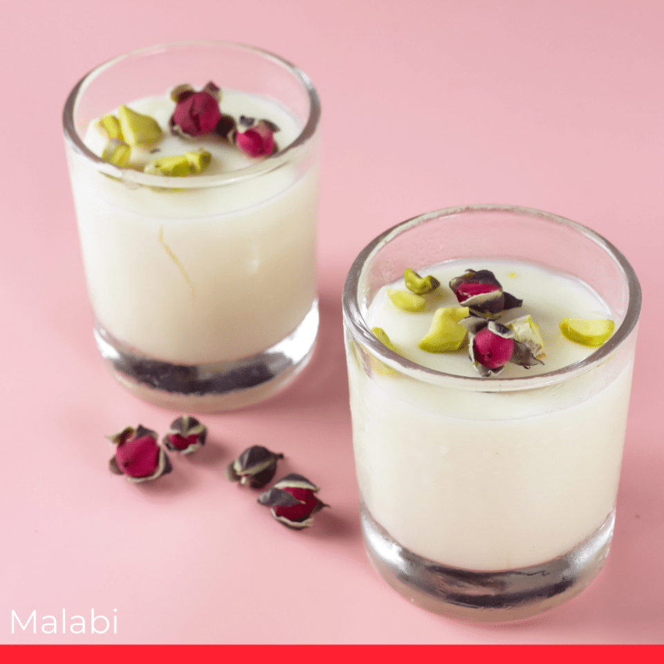 Malabi is a creamy, milk-based dessert that is hugely popular in the Middle East. Like knafeh, this delicious pudding is flavored with rose water, giving it a sweet yet mellow flavor, and topped with pistachios. In Israel, malabi can be found everywhere, from street stands to fancy restaurants.