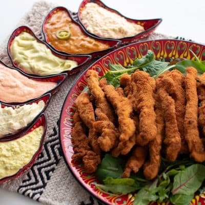 If you’re looking for a crowd-pleasing party food that’s easy to make and incredibly delicious, look no further than these chicken fingers with six delicious mayo dips.