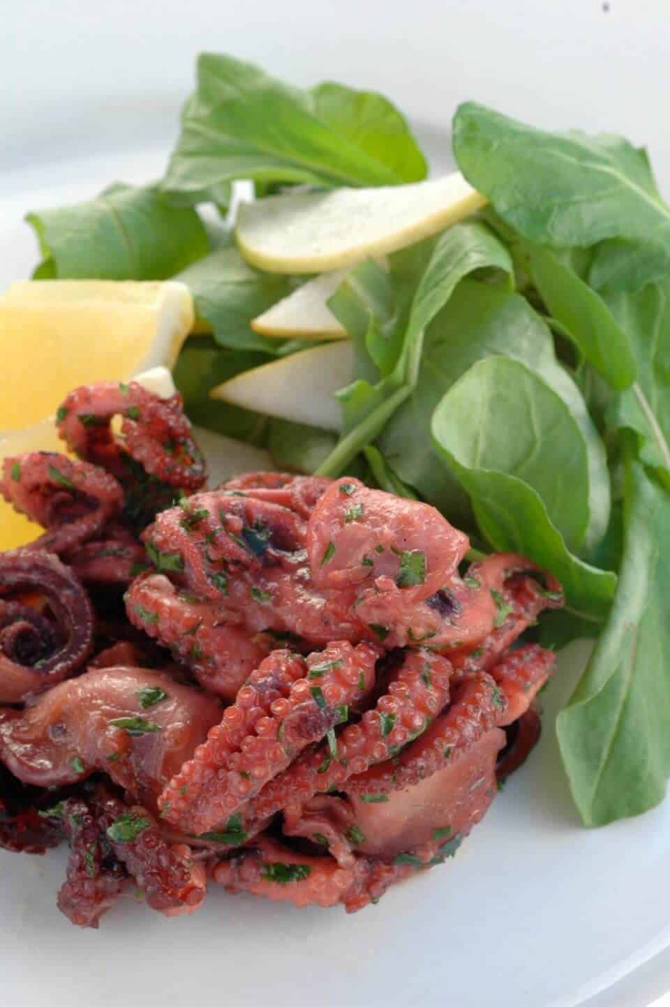 Braised Baby Octopus with Rocket and Pear Salad