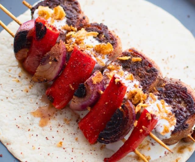- When ready, serve the kebabs with a light sauce of buttermilk and sumac well mixed together and tortillas or pita bread.